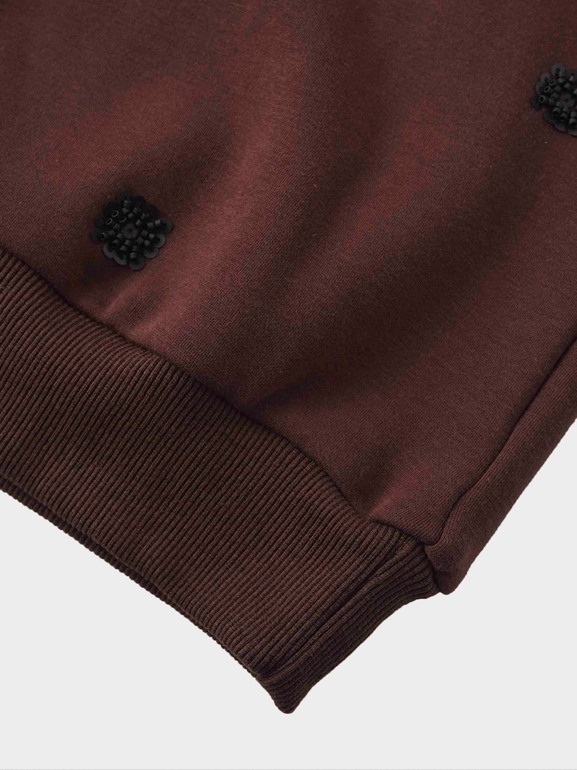 This Embellished Sweatshirt in brown and black seamlessly blends casual comfort with refined detailing. Crafted for everyday wear, its unique embellishments add a subtle yet distinctive edge, making it an ideal choice to elevate your laid-back wardrobe with expert style.