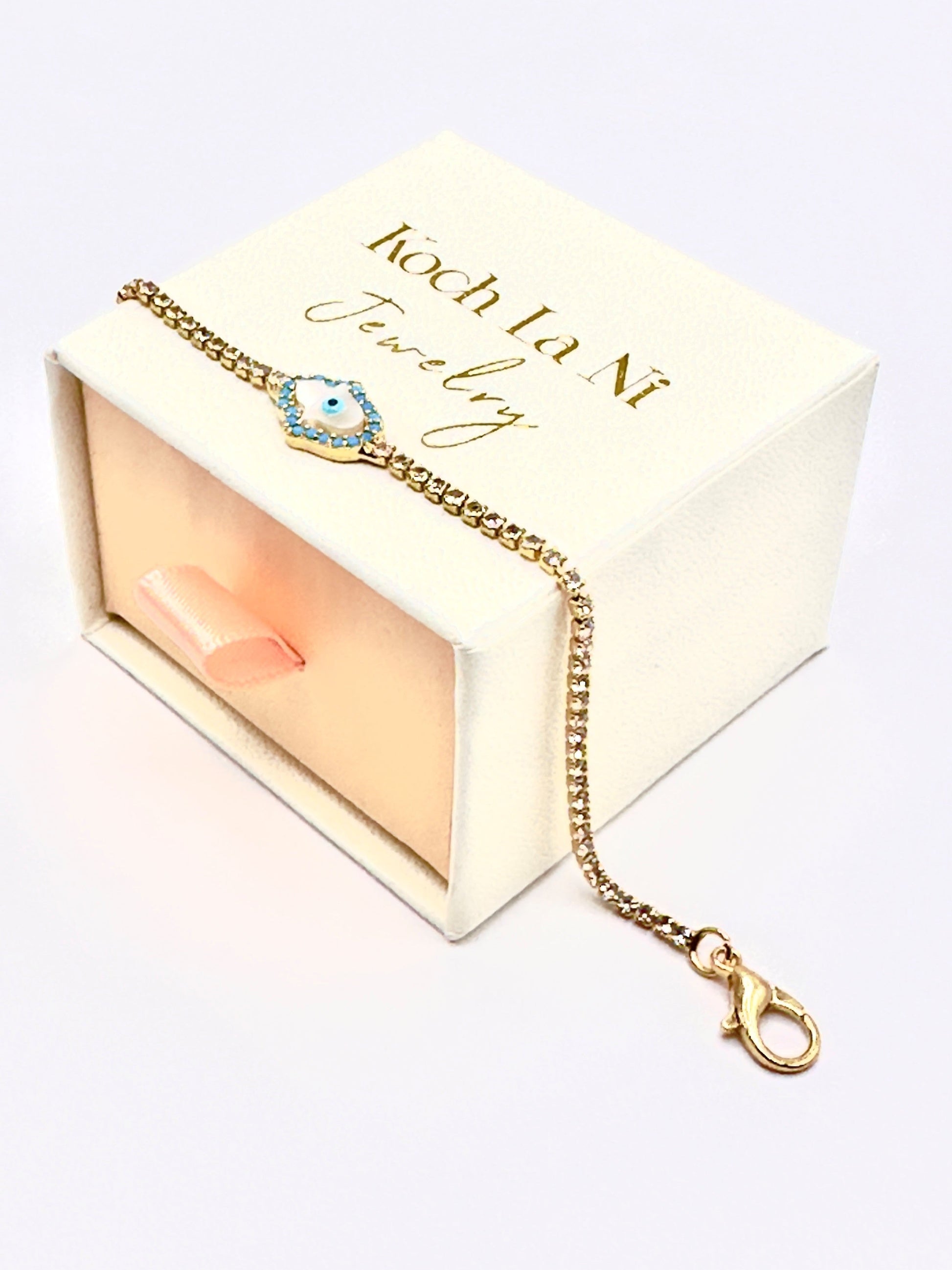 Hamsa Evil Eye Crystal Tennis Bracelet – Gold