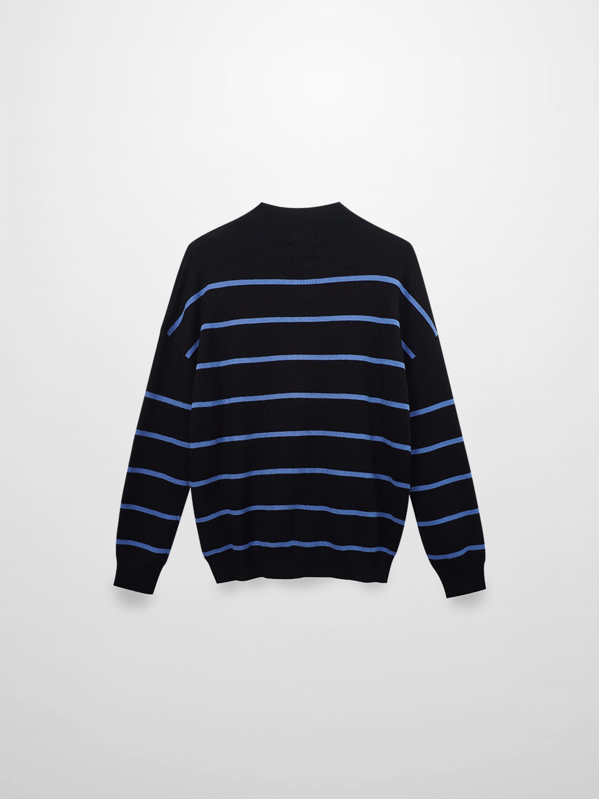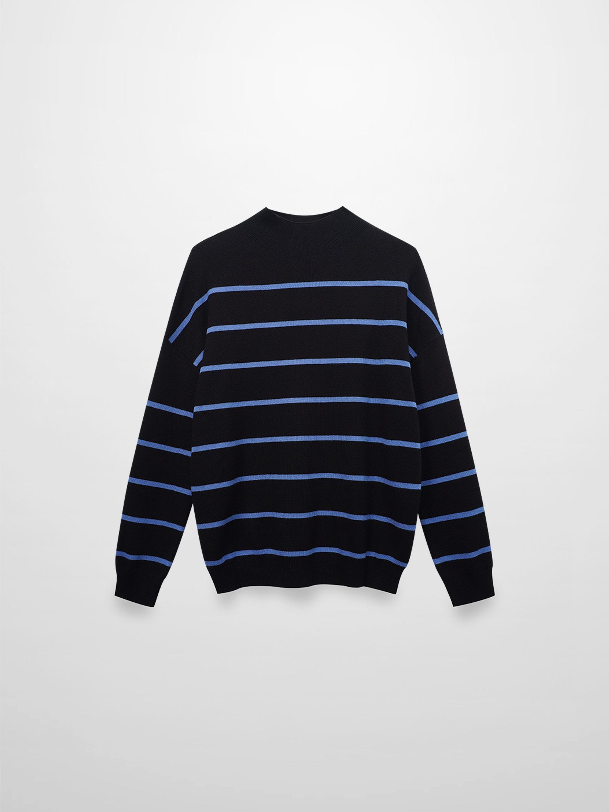 Mock Neck Thin Knit Sweater-Black/Light Blue